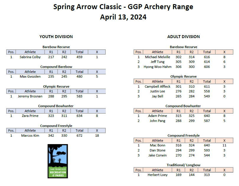 ARCHERY QUESTIONS? E-MAIL JOE.ARNALDO@SFGOV.ORG