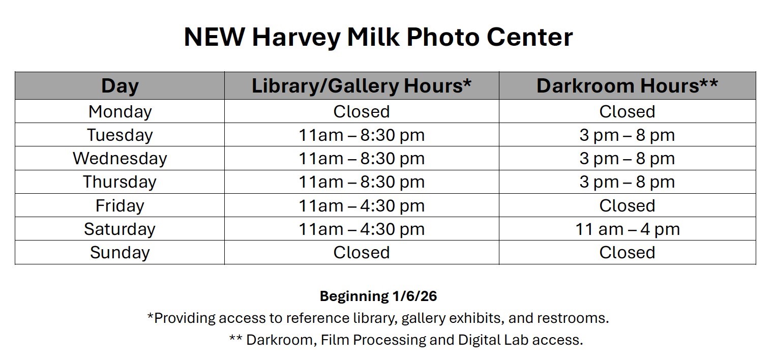 Beyond providing access to our community darkroom and digital lab, we boast a diverse range of offerings including classes, workshops, membership options, a photo library, lectures, book signings, and numerous photography exhibits and events. The Harvey Milk Photo Center serves as a vibrant hub where the community converges to create, learn, share, and find inspiration.